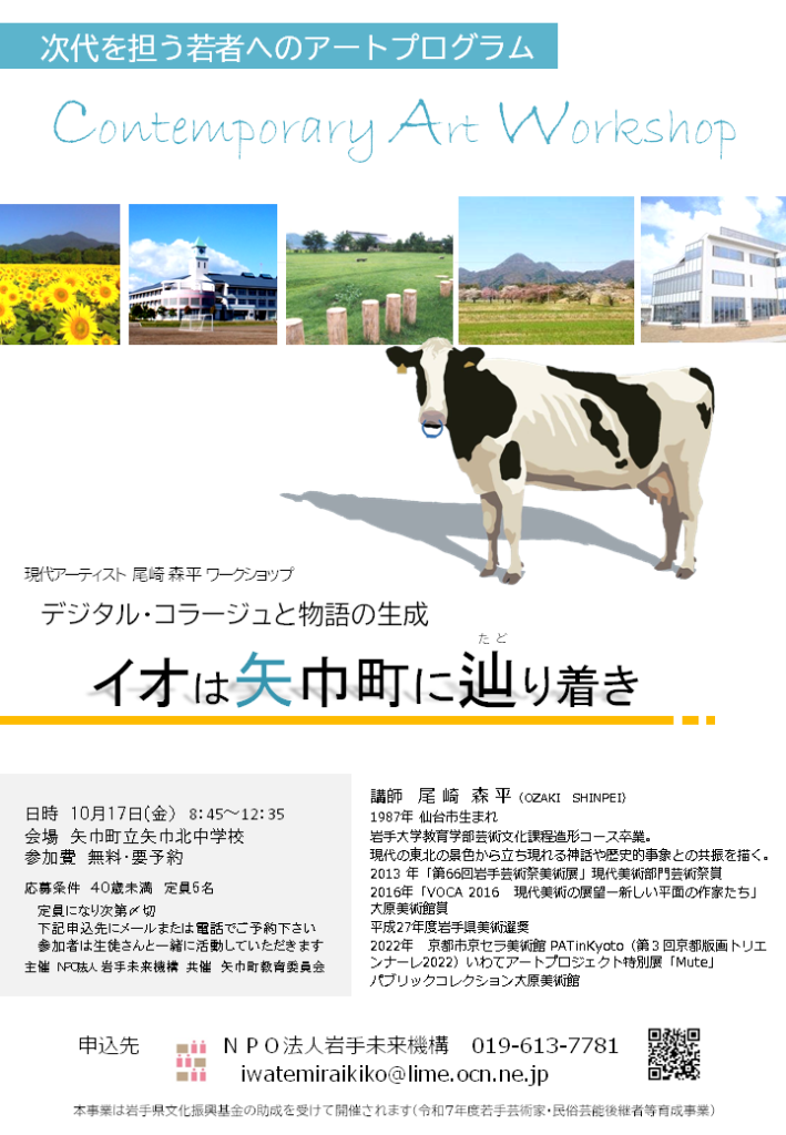 次代を担う若者へのアートプログラムとして、10月17日、矢巾町北中学校にて、現代アーティスト・尾崎森平のワークショップ