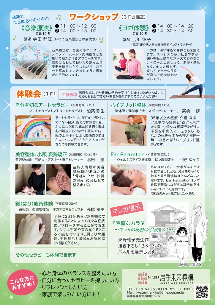 心と身体の健康について「知り」「学び」「体験する」イベントを開催します。